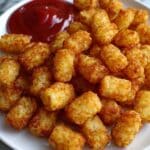 - Serve: Once golden brown and crispy, remove the tater tots from the air fryer. Serve hot with ketchup or your favorite dipping sauces.