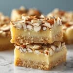 These Almond Bars feature a buttery sugar cookie base topped with a creamy almond filling, sliced almonds, and a drizzle of white chocolate. Perfectly baked to golden perfection and chilled for a firm, delightful finish, they’re a delicious treat for gatherings or everyday indulgences.