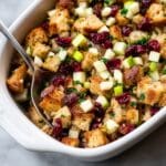 This Apple Cranberry Stuffing combines tart apples, sweet dried cranberries, and fresh herbs with toasted sourdough bread, creating a moist and flavorful side dish perfect for holiday meals or any comforting dinner.