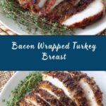 For a festive touch, serve the bacon wrapped turkey breast on a wooden carving board with scattered fresh herbs and a small bowl of cranberry sauce or herb cream cheese. Not only is this visually inviting, but it also offers your guests the chance to customize each bite.