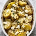 Using crumbled feta won’t have the same melting effect that a block does during baking. The block offers a creamy texture that blends beautifully with the potatoes, so it’s best to stick with that if possible.