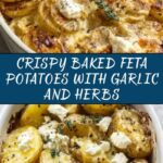 - Bake the dish: Bake in the preheated oven for 35–40 minutes, or until the potatoes are golden and crispy on the edges and the feta cheese has softened and is lightly browned on top.