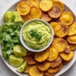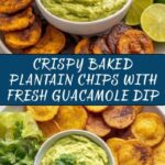 A delicious and healthy snack featuring crispy baked plantain chips paired with a creamy, flavorful guacamole dip. Perfect as a vegan and gluten-free appetizer or snack with fresh Latin American flavors.