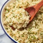 Brown rice has a longer cooking time and different water absorption, so it’s not ideal for this recipe without adjusting cooking time and liquid. For best results, stick with long-grain white rice as directed.
