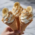 While these cones are a treat on their own, adding a little garnish can elevate the presentation and flavor. Consider a sprig of fresh mint for a pop of color and freshness or a light dusting of cinnamon or nutmeg to complement the banana’s natural sweetness. Crushed vanilla wafers sprinkled on top add extra crunch and visual appeal.