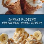 Delight in these creamy Banana Pudding Cheesecake Cones, a fun and portable dessert combining smooth cheesecake filling with fresh bananas and crunchy vanilla wafers, all served in a crisp sugar cone. Perfect for gatherings or a refreshing treat.