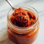 While pasta with sauce can be frozen, the texture of Best Pesto Rosso Spaghetti Pasta Recipe is best preserved fresh. However, you can freeze the pesto rosso separately in ice cube trays and thaw it as needed—this makes dinner prep even quicker on busy nights.