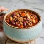 Absolutely! Substitute the ground beef with a plant-based protein like textured vegetable protein or extra beans, and use vegetable broth instead of beef broth. The spices and tomatoes provide plenty of flavor, so it won’t miss the meat.