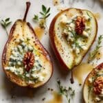 A simple yet elegant appetizer featuring ripe pears stuffed with creamy blue cheese, drizzled with honey, and topped with toasted nuts. Baked until tender and slightly melted, these blue cheese stuffed pears make a perfect balance of sweet and savory flavors suitable for any occasion.