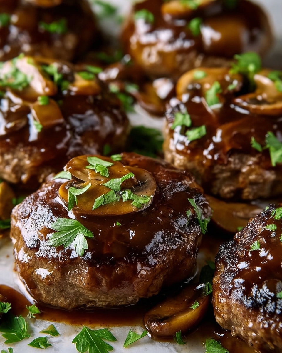 This Salisbury steak shines when paired with comforting sides that catch every drop of the luscious mushroom gravy. Classic mashed potatoes are a perfect companion, but creamy polenta, buttery egg noodles, or even simple steamed rice work equally well. Roasted vegetables or a crisp green salad add a refreshing texture contrast to the rich meat and gravy.