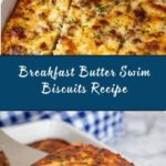 These Breakfast Butter Swim Biscuits are a savory and cheesy delight, combining hearty breakfast sausage, melted butter, and shredded Colby Jack cheese baked into fluffy biscuits. Perfect for a satisfying morning meal, these biscuits are baked to a golden finish and served warm, making for a comforting and delicious start to the day.