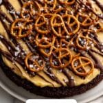 - Assemble Toppings: Drizzle ganache in a spiral pattern over the peanut butter layer. Sprinkle chopped mini pretzels, cocoa nibs, and a dusting of flaky sea salt immediately for crunch and flavor contrast.