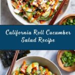 Keep any leftover California Roll Cucumber Salad Recipe in an airtight container in the refrigerator. It’s best enjoyed within a day or two, as the avocado may start to brown and cucumbers can get a bit watery over time.
