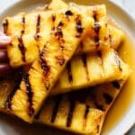 - Serve: Remove the pineapple from the grill and brush any remaining caramel sauce from the pan over the hot spears to add extra flavor and shine before serving.