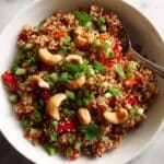 This Cashew Chicken Quinoa Bake is a wholesome, flavorful one-dish meal combining tender chicken, nutritious quinoa, vibrant vegetables, and crunchy cashews, all baked to perfection with a melty cheese topping. Perfect for a healthy dinner, it offers a balanced mix of protein, fiber, and Asian-inspired flavors, making it an easy and satisfying weeknight dinner option.