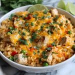 For a festive presentation, serve the Cheesy Arroz Con Pollo Recipe in a rustic cast iron skillet straight from the stove to the table, letting everyone dig in family-style. You can also use individual bowls and garnish each with a lime wedge and a sprinkling of cilantro for an inviting, personal touch that makes every serving feel special.