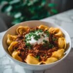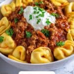 Cheesy Beef Enchiladas Tortellini combines the rich flavors of classic Tex-Mex enchiladas with tender, cheesy tortellini pasta for a unique and comforting main course that’s perfect for family dinners.