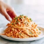 - Milk (1/2 cup): Lightens the sauce just enough and keeps it from becoming too thick.