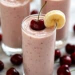 You can freeze portions of the Cherry Banana Smoothie Recipe in individual containers or ice cube trays for up to a month. When ready to enjoy, just thaw in the fridge or blend again with a splash of milk to restore creaminess.