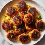 These Chicken and Ricotta Meatballs are tender, flavorful, and easy to prepare. Made with ground chicken, creamy ricotta, and Parmesan cheese, they are baked to golden perfection and optionally simmered in marinara sauce for a delicious Italian-inspired main course.