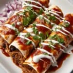 These Chicken Enchiladas are a hearty and flavorful Mexican-inspired dish featuring shredded chicken, black beans, green chiles, and a blend of spices, all wrapped in flour tortillas and baked with melted cheese and enchilada sauce. Perfect for a comforting family dinner served with fresh toppings like cilantro, avocado, and sour cream.