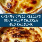 This delicious Chile Relleno Soup with Cheddar and Cream Cheese combines roasted poblano peppers, tender chicken, and a creamy, cheesy broth to deliver a rich and comforting Mexican-inspired dish. Perfect for a cozy meal, this soup balances smoky, spicy, and creamy flavors with a broiled cheesy topping for a delightful finishing touch.