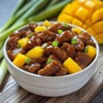 This Chinese Style Mango Chicken Stir Fry is a vibrant and flavorful dish featuring tender chicken breasts marinated and stir-fried with fresh mango, colorful bell peppers, and a tangy mango-based sauce. Ready in just 30 minutes, it’s a perfect weeknight dinner that balances sweet, savory, and a hint of spice, served over rice or noodles and garnished with fresh green onions.