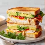 This sandwich is not ideal for freezing once assembled and cooked because the bread’s texture will degrade. Instead, you can freeze the individual components like smoked chicken or chipotle sauce separately and assemble fresh when ready.
