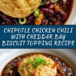 This hearty Chipotle Chicken Chili with a Cheddar Bay Biscuit Topping is a flavorful one-pot meal combining smoky chipotle peppers, tender shredded chicken, and creamy white beans. Topped with fluffy cheddar-studded biscuits, it’s perfect for a cozy dinner that blends comforting chili with a savory biscuit crust baked to golden perfection.
