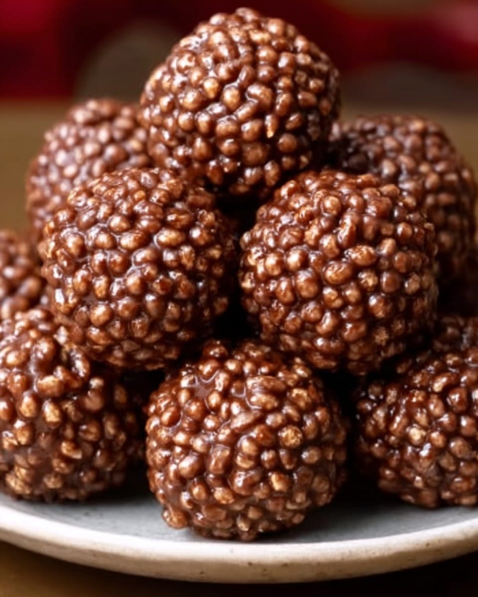 Presentation is half the fun! Serve your Christmas Chocolate Rice Krispie Balls Recipe in decorative holiday tins, on vintage cake stands, or arranged inside clear cellophane bags tied with a festive ribbon for gift-giving. You can also thread a few balls onto wooden skewers with fresh cranberries or marshmallows for a playful holiday pop.