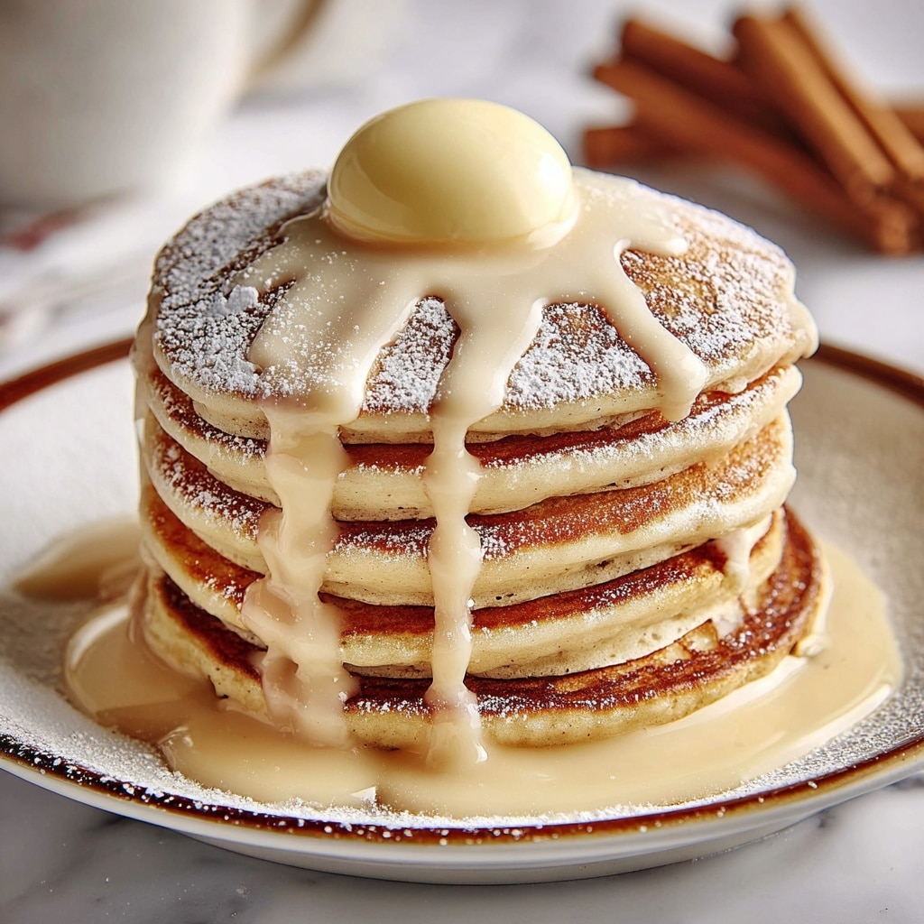 Delight in these fluffy Cinnamon Roll Pancakes, a perfect breakfast treat combining the classic flavors of cinnamon rolls with the lightness of pancakes. Swirled with a cinnamon brown sugar filling and topped with buttery goodness, these pancakes are easy to make and sure to impress your family or guests.