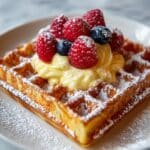 Pair your waffles with crispy bacon, savory sausage links, or a fresh fruit salad to round out the meal. These sides add balance, providing a mix of salty and sweet that complements the waffle’s buttery goodness beautifully.