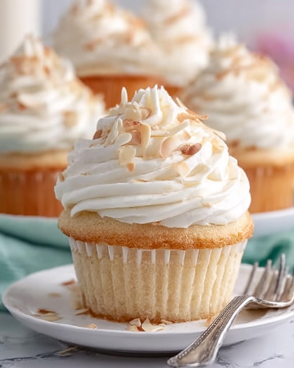 - Garnish and Serve: Sprinkle shredded coconut over the frosted cupcakes for a beautiful and flavorful finish. Serve immediately or refrigerate until ready to enjoy.