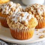 Delight in these moist and tender Coffee Cake Muffins, featuring a perfectly crumbly cinnamon streusel topping. With a luscious sour cream-based batter and an optional sweet glaze, these muffins bring the classic coffee cake experience into a convenient, individual-sized treat perfect for breakfast or snack time.
