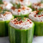 - Season: Sprinkle each hummus-topped cucumber with paprika, salt, and pepper to enhance the flavor balance.