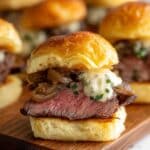 These Cowboy Butter Steak Sliders offer a mouthwatering combination of thinly sliced seared steak layered with melted cheese and brushed with a flavorful garlic and spice-infused cowboy butter. Perfect for game day or casual entertaining, these sliders are toasted, baked until the cheese melts, and garnished with fresh parsley for an irresistible appetizer.