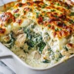 This creamy chicken and spinach casserole is a comforting and flavorful dish perfect for an easy weeknight dinner. Featuring tender shredded chicken, sautéed spinach, and a rich cream cheese-based sauce topped with mozzarella and Parmesan, it bakes to a golden bubbly perfection that pairs wonderfully with salad or bread.