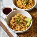 Once your noodles are perfectly coated and the sauce is velvety, divide the dish among bowls. Top generously with extra sliced spring onions, crushed roasted peanuts for crunch, and if you like a little heat, a drizzle of Asian chilli oil or chilli crisp. Don’t forget the lime wedges—squeezing fresh lime over the top at the table adds a zesty brightness that makes every bite better.