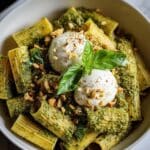 How to Serve Creamy One Pot Rigatoni with Basil-Pistachio Pesto & Burrata Recipe