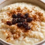 This Creamy Rice Pudding recipe offers a luscious, comforting dessert made with tender long grain rice simmered in a mixture of evaporated and whole milk, sweetened with sugar, flavored with cinnamon and cloves, and enriched with butter and vanilla. Perfectly soft and creamy with plump raisins adding a delightful chewiness, this classic dessert is easy to prepare and serves six.