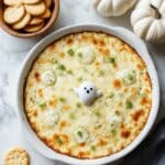 - Garnish and Serve: Place plastic spider rings or other food-safe Halloween decorations around the dish. Sprinkle with chopped fresh green onions or chives. Serve the dip warm with assorted dippers like tortilla chips, celery sticks, and carrot sticks.