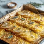 Bake the potatoes for about one hour. Be patient—the long bake time is what transforms the slices into perfectly crisp and golden leaves with soft, buttery centers. You’ll know they’re ready when the edges and top have turned a deep golden brown, and your kitchen fills with a heavenly aroma.