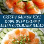 A vibrant and flavorful Crispy Rice Salmon Cucumber Salad featuring lightly fried day-old rice, pan-seared salmon fillets, fresh cucumber, carrots, and green onions, all topped with a creamy Asian dressing made from mayonnaise, soy sauce, sesame oil, and a touch of sriracha for heat. This quick and nutritious salad is perfect for a light lunch or dinner, combining textures and tastes that will delight your palate.
