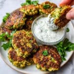 These Crispy Vegetable Fritters with Creamy Garlic Tzatziki are a delicious and healthy Mediterranean-inspired appetizer featuring golden, crunchy zucchini and carrot fritters paired with a refreshing homemade garlic tzatziki sauce. Perfectly seasoned and pan-fried to perfection, these fritters offer a delightful combination of textures and flavors, making them ideal for a light meal or entertaining guests.