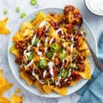 - Garnish and Serve: Add chopped green onions and a dollop of sour cream on top for freshness and creaminess. Optionally, add jalapeños for extra heat. Serve immediately to enjoy the contrast of crunchy chips and warm chili.