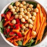 Keep your Crunchy Thai Chickpea Salad Recipe in an airtight container in the fridge for up to 2 days. The salad holds nicely, though it’s best enjoyed fresh for that signature crunch. If the veggies release any water, just give everything a quick toss before serving again.
