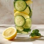 A refreshing and healthy cucumber lemon mint infused water recipe that hydrates and revitalizes with natural flavors. Perfect for detoxing or spa-style hydration, this naturally flavored water combines thinly sliced cucumber, lemon, and fresh mint leaves for a crisp, invigorating drink.
