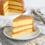 Wrap any leftover cake tightly with plastic wrap or store in an airtight container at room temperature for up to 2 days to keep the cake moist and the caramel icing soft.