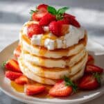 These delicious strawberry shortcake pancakes are a delightful twist on the classic dessert, combining fluffy homemade pancakes with fresh strawberries and whipped cream for a perfect breakfast or brunch treat.