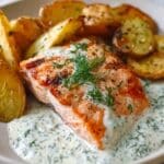 This Dill Salmon with Potato Wedges and Creamy Pickle Dill Sauce is a delightful, flavorful meal combining tender, lemon-dill baked salmon with crispy golden potato wedges and a tangy, creamy pickle dill sauce. Perfect for a wholesome family dinner, this recipe balances fresh herbs, zesty citrus, and comforting sides for a satisfying and elegant plate.